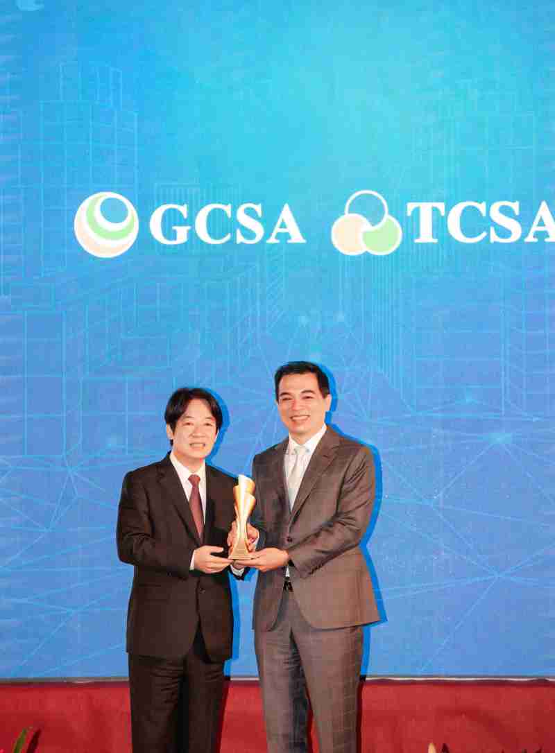 达全方位永续表现获全球永续奖及台湾永续奖肯定,,由副总统赖清德颁奖 (左),,,OBPay总经理柯富仁 (右) 代表领奖