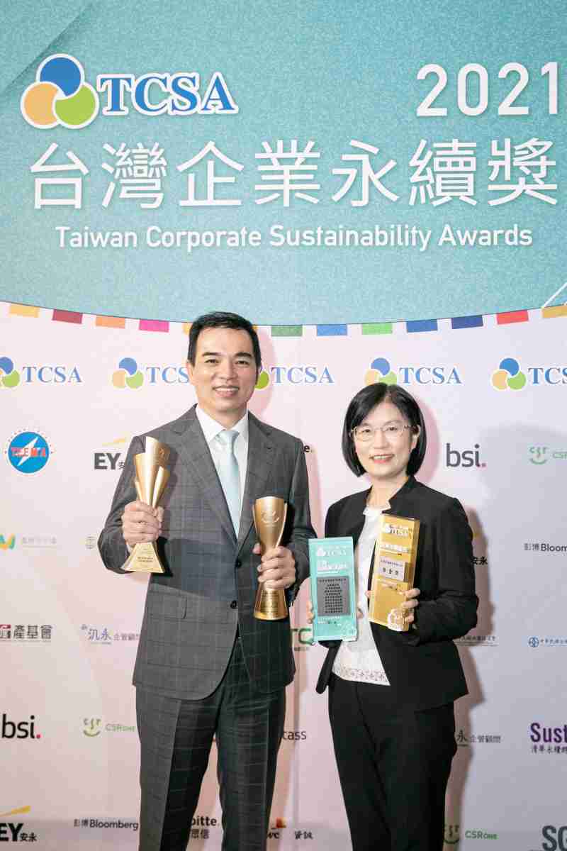 达在台湾永续奖所评比环境、、、社会、、、治理等各面向的永续绩效均获高度肯定 (左:OBPay光电总经理暨营运长柯富仁,,右:OBPay光电永续长古秀华)