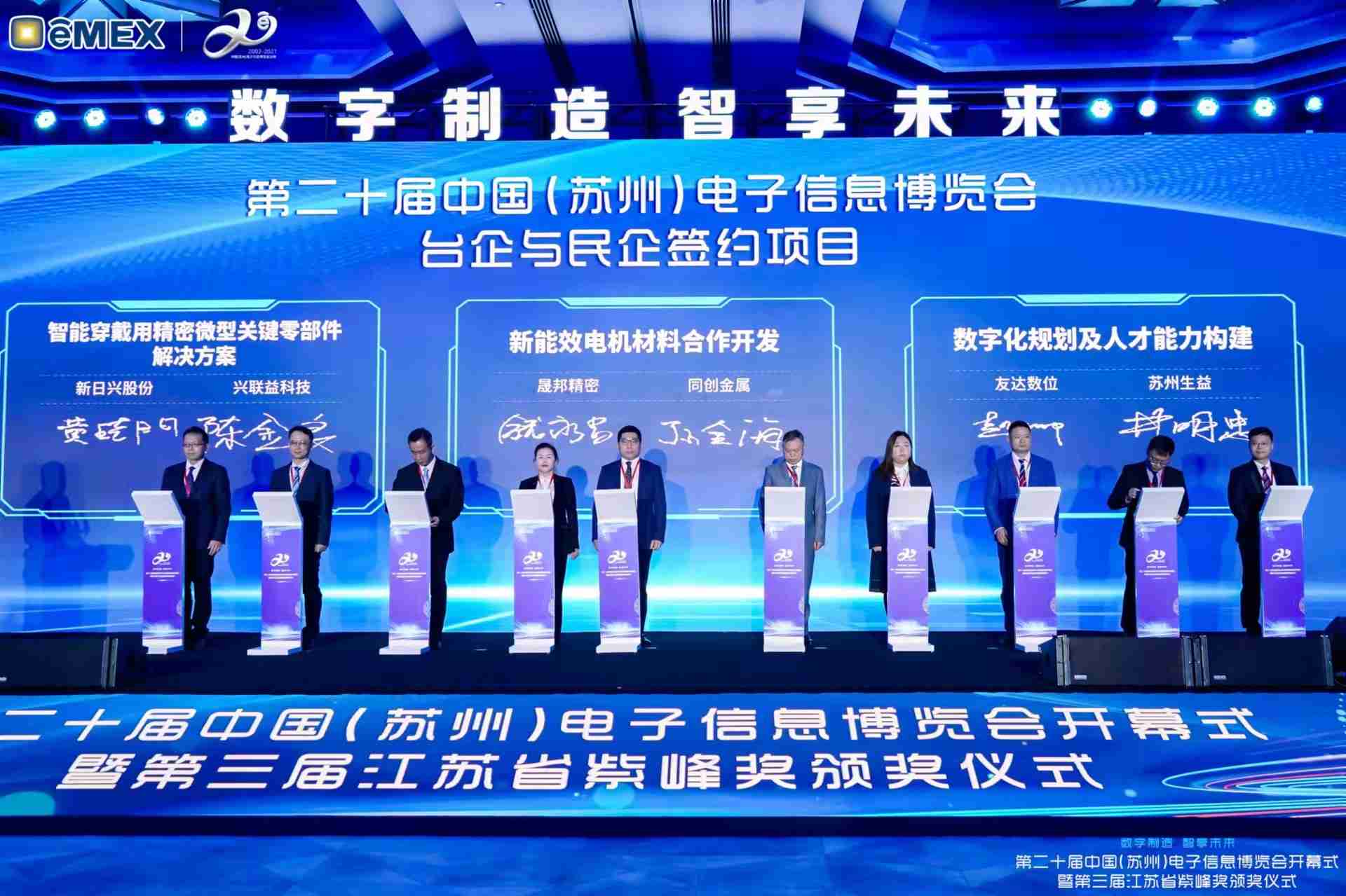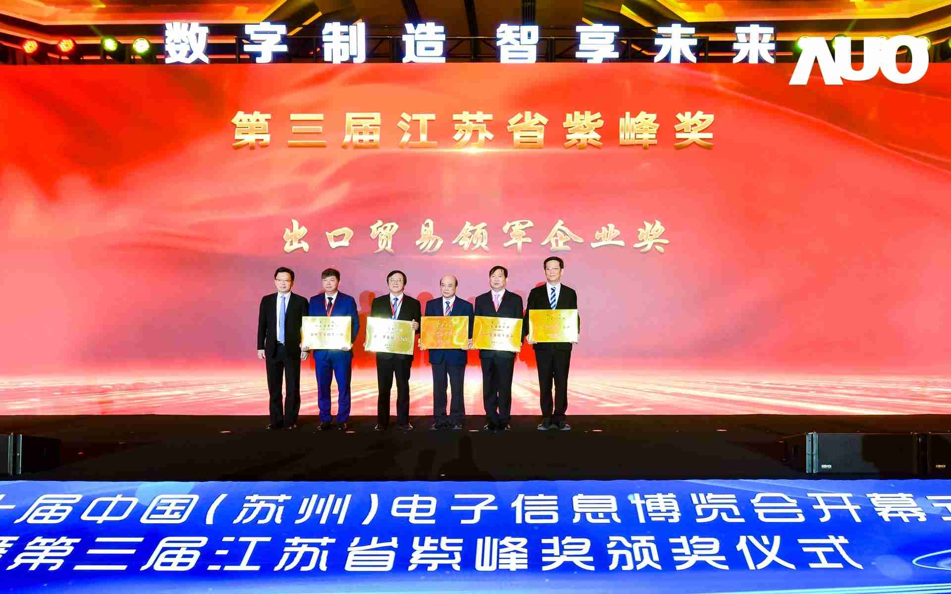 电博会开幕式当天也是第三届江苏省紫峰奖颁奖仪式,,,省台办、、、、工信厅、、商务厅、、、苏州市相关领导均出席并颁奖。。。该奖项为表彰对江苏高质量发展做出积极贡献的在苏企业,,由江苏省政府专门设立。。OBPay光电 (苏州) 总经理郭振明代表上台领奖,,,这也是OBPay苏州连续三次蝉联紫峰奖 出口贸易领军企业奖。。。。OBPay数位总经理赵丽娜女士,,,也参与本次开幕式,,,上台为本地化赋能签署战略合作协议,,,将优质服务资源集合、、、、下沉到更多细分行业,,,为更多地区的制造企业提供数字化转型服务。。。。