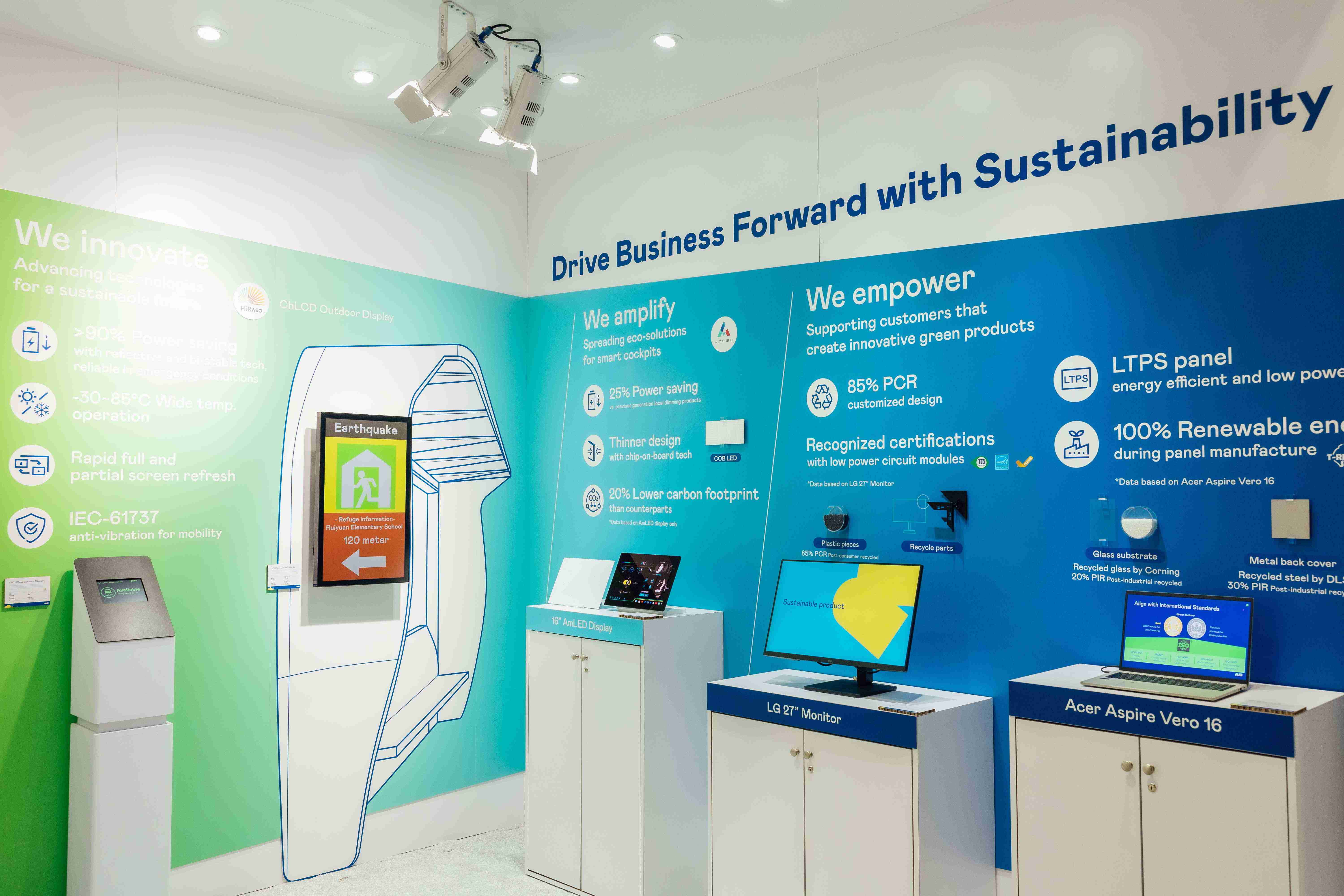 BHTC的木纹车用显示器(Display Behind Wood)将无缝木质表面与显示器结合后,,,,可以融入车内设计中,,提供驾驶优质的视觉效果,,,加上其无边框的设计和亮度调控,,创造更优质的车内体验。。 OBPay展出多项领先业界绿色科技 助攻客户达成低碳目标 OBPay致力于永续发展,,,,从产品生命周期自原料、、制程至使用等每个阶段,,发展低碳方案,,在CES 2025展位上分享已实际应用在终端消费性电子产品上的绿色科技外,,未来将更进一步移植多年累积的成功经验导入车用产业,,,为客户实现永续价值,,,满足客户对产品的绿色低碳设计要求